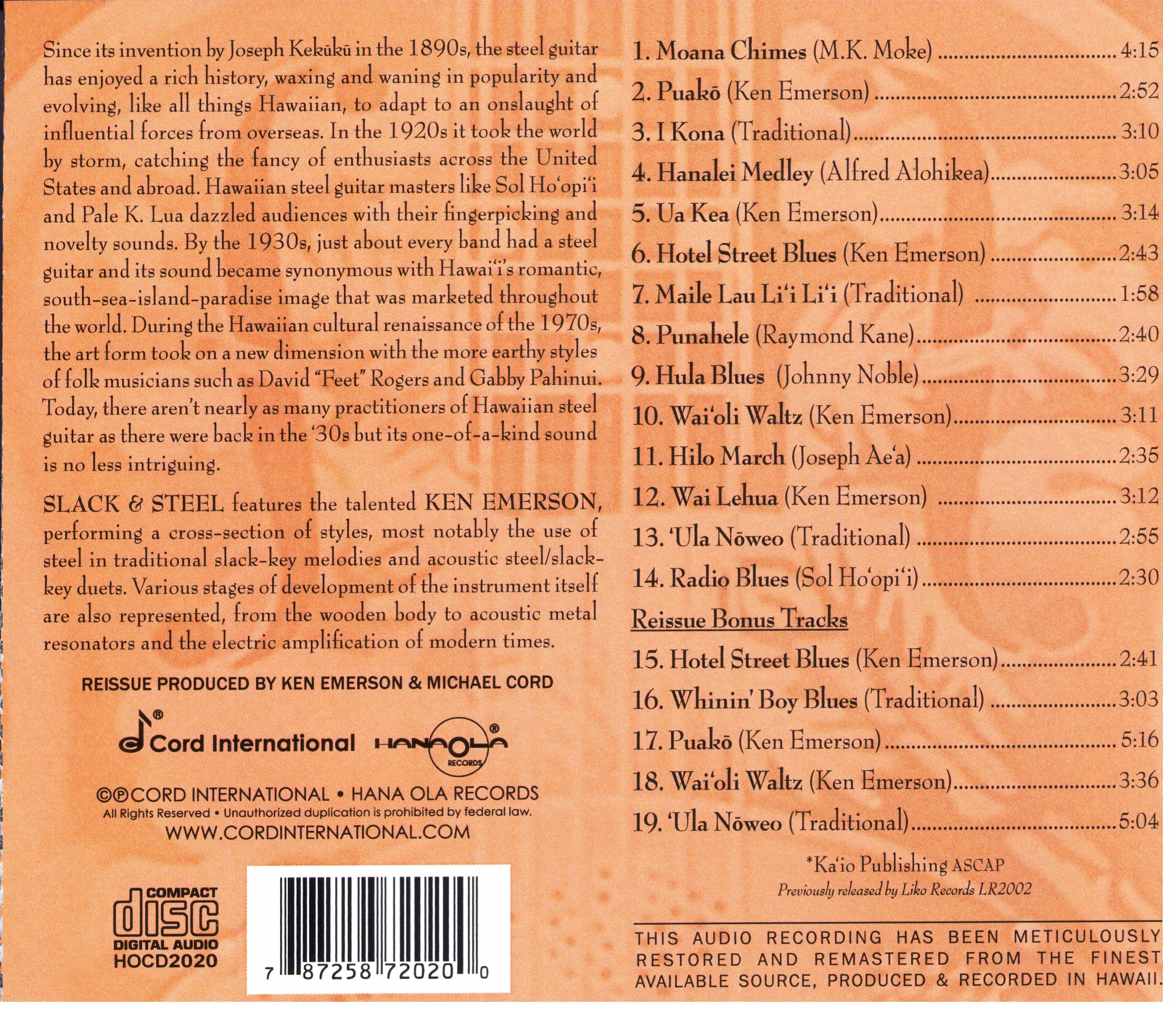 ![]() HOCD2020 Ken Emerson Slack & Steel Acoustic & Electric Steel Guitar with Slack Key |